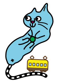 猫の体が琵琶湖の形で、尻尾が線路になっており、尻尾を近江鉄道をイメージした電車が乗っています。